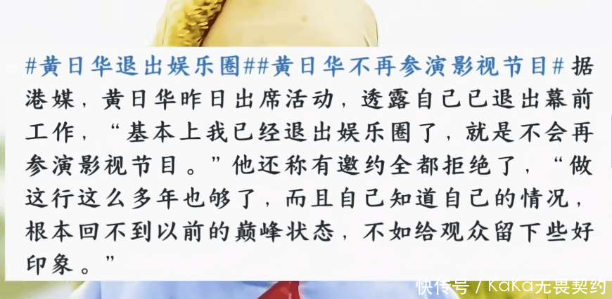 侠之大者,为国为民”,没想到曾凭借饰演郭靖、乔峰这两个经典角色而火遍大江南北的黄日华,在2025年12月5日正式公开宣布退出娱乐圈。黄日华在宣布退出娱乐圈的声明中,直言拒绝所有影视邀约。他表示如今随着岁月的流逝,自己的精力有限很难再回到曾经饰演郭靖和乔峰时的状态。他希望观众永远记得自己在演艺生涯中的巅峰时刻,那是他用精湛演技铸就的辉煌篇章。